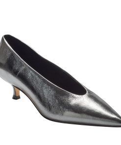 Marc Fisher Women’s Shoes Cecile Kitten Heel Pump | Silver Leather | Silver Leather | Women’s Shoes