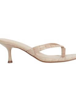 Marc Fisher Women’s Shoes Alonde Heeled Slide Sandal | Platino Leather | Platino Leather | Women’s Shoes