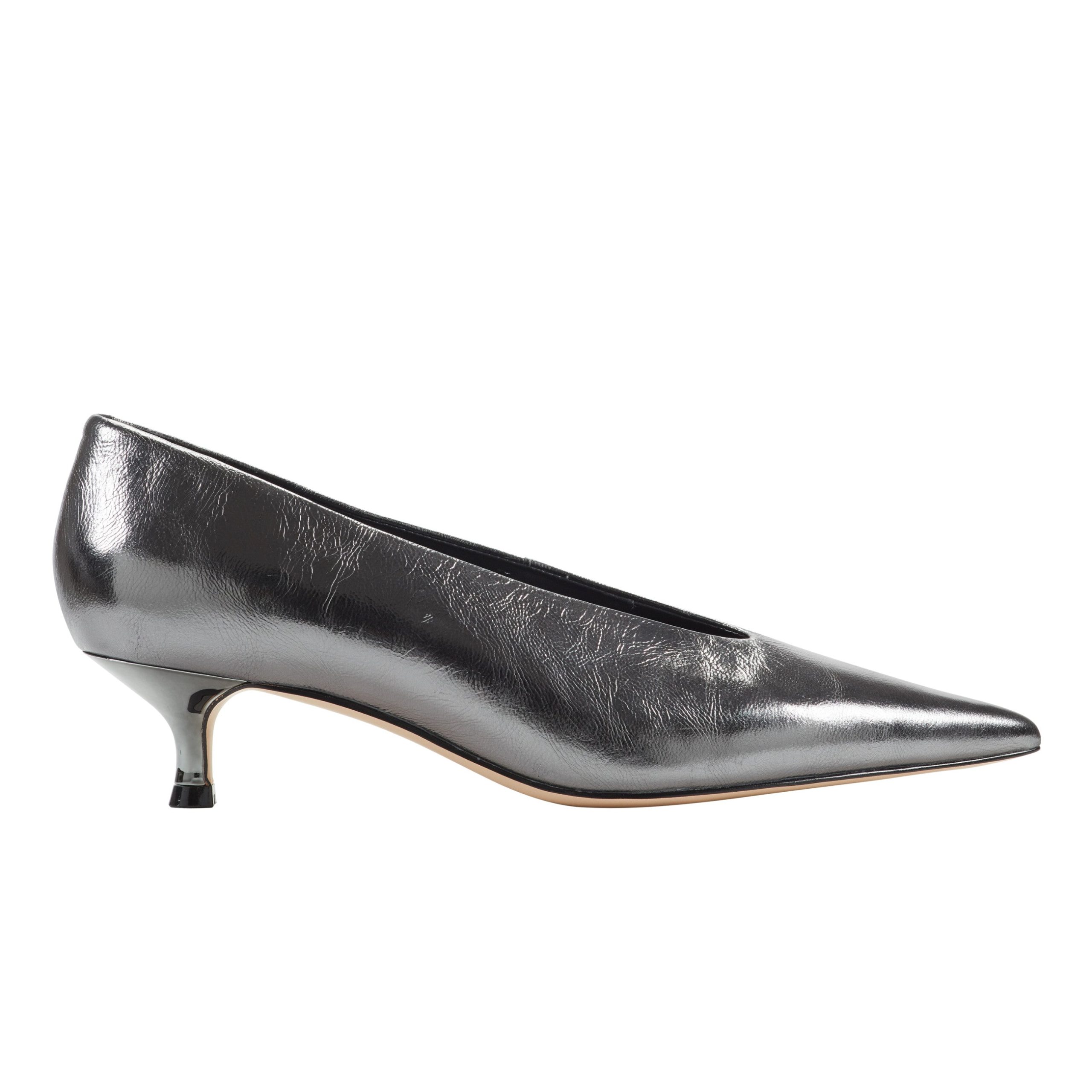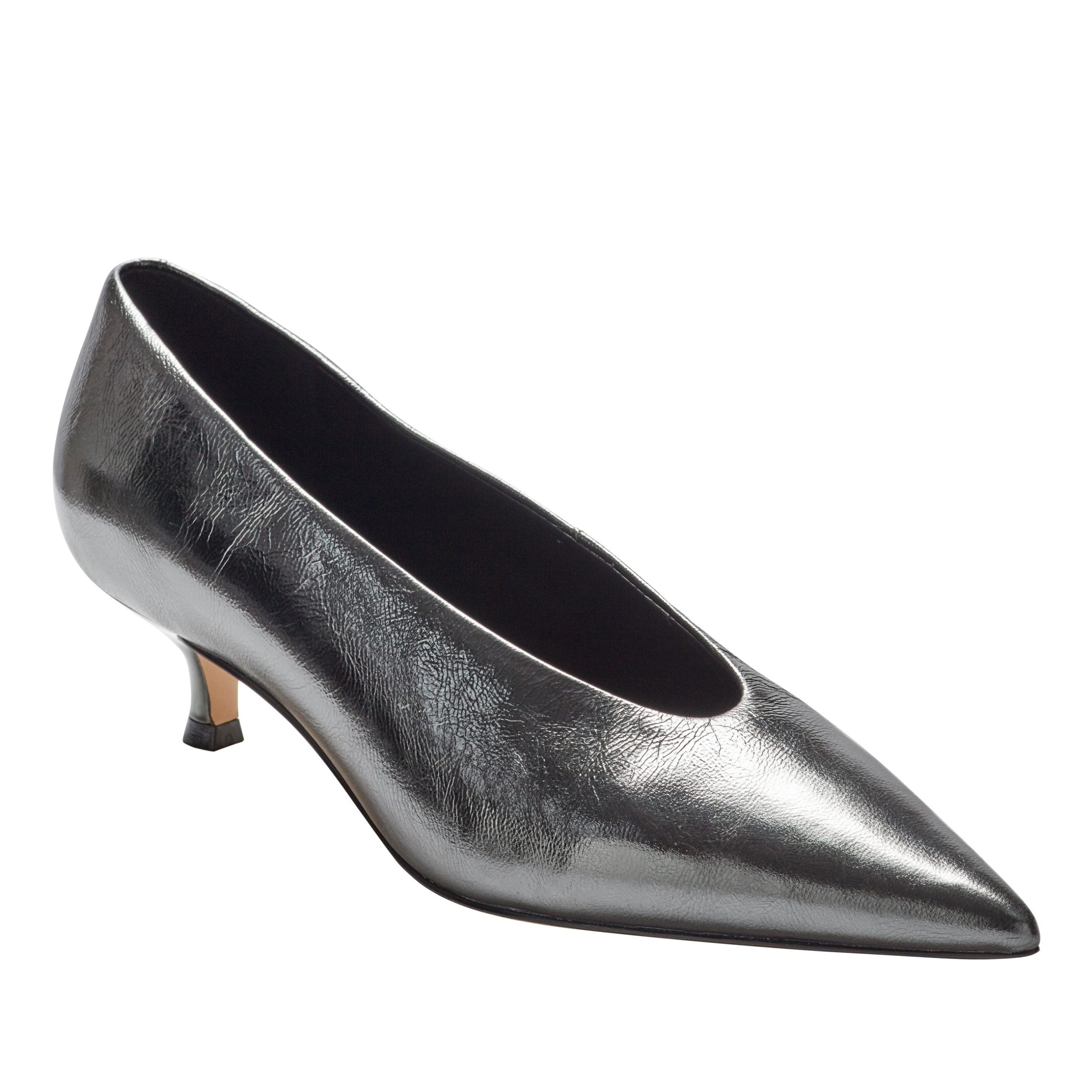 Marc Fisher Women’s Shoes Cecile Kitten Heel Pump | Silver Leather | Silver Leather | Women’s Shoes
