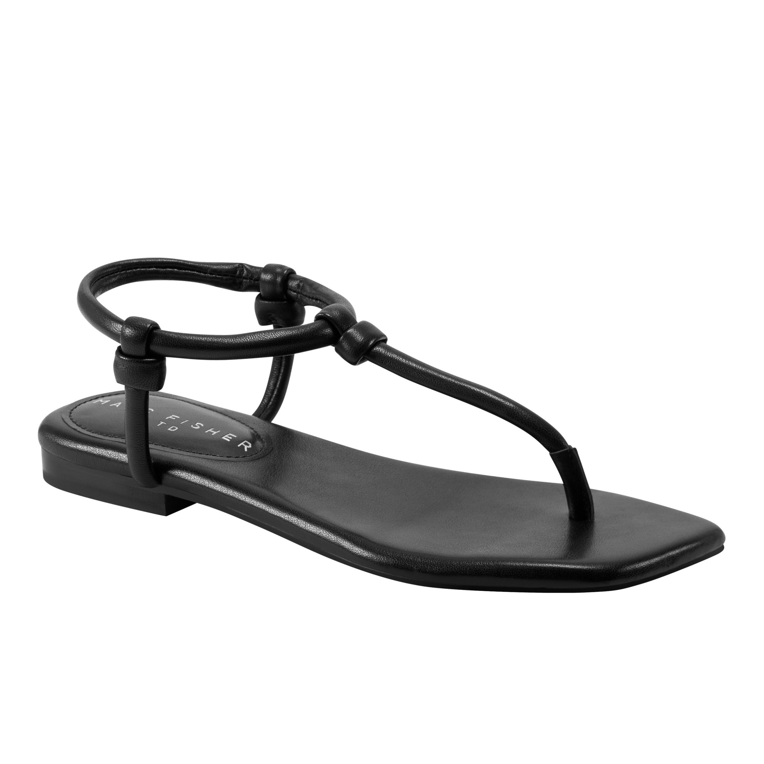 Marc Fisher Women’s Shoes Maycee Thong Flat Sandal | Black Leather | Black Leather | Women’s Shoes