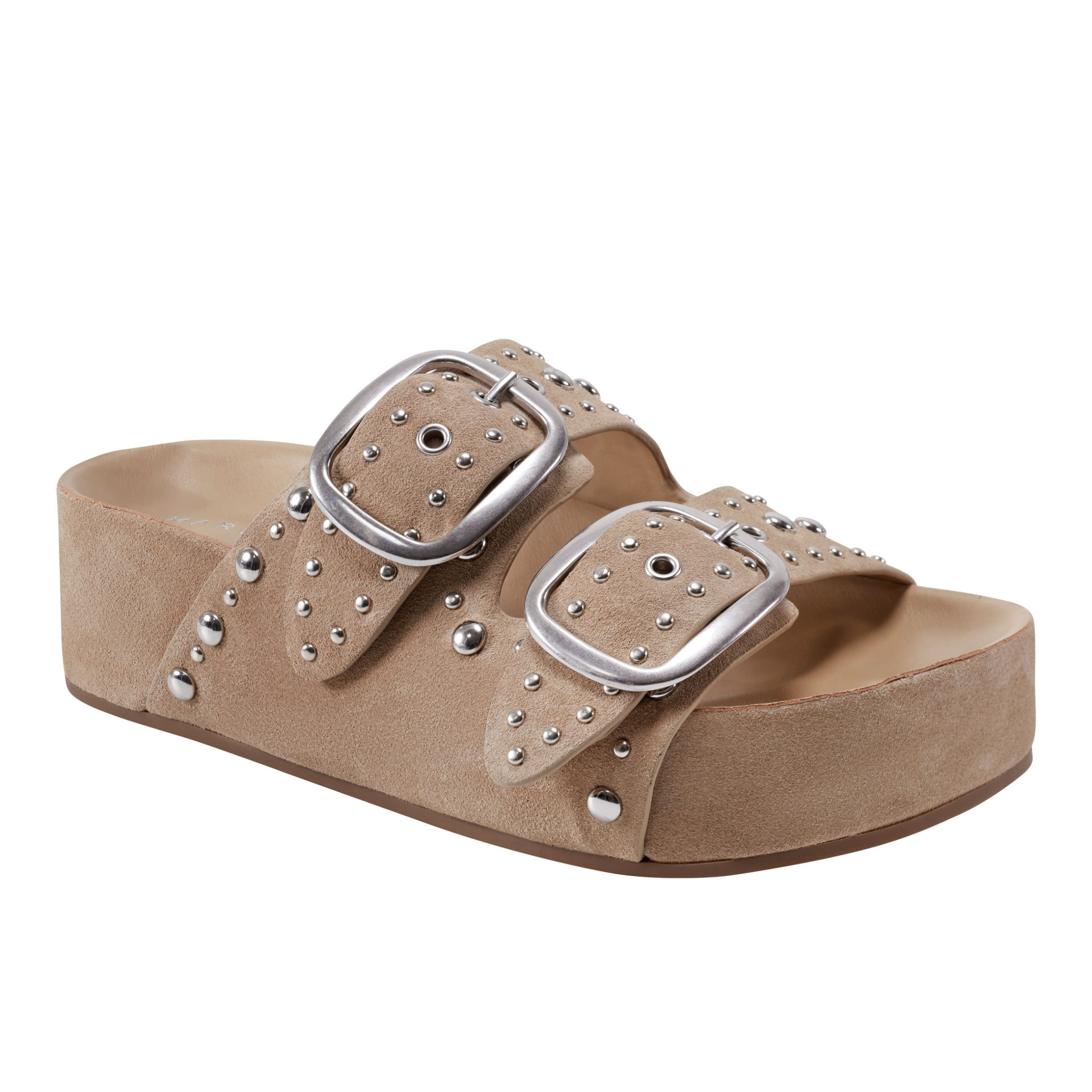 Marc Fisher Women’s Shoes Sayge Footbed Studded Sandal | Brown Suede | Brown Suede | Women’s Shoes